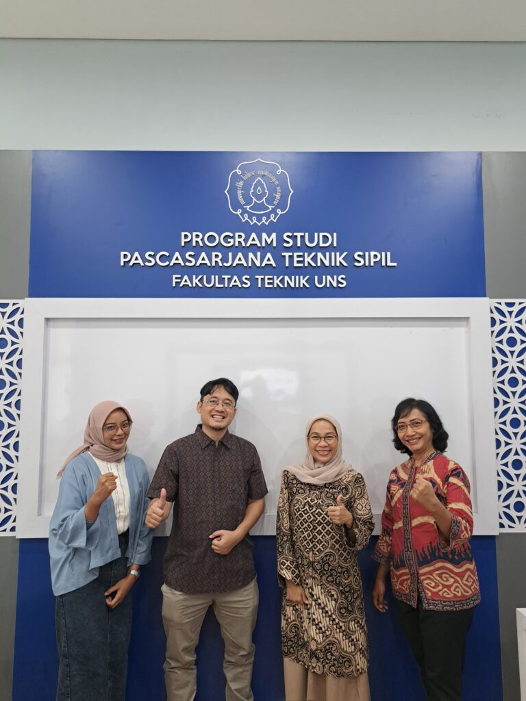 Pada pelaksanaan AMI tahun 2025, Dr. Eng. Kusumaningdyah Nurul Handayani dari Program Studi Magister Arsitektur dipercaya sebagai auditor untuk Program Studi Magister Teknik Sipil. Kehadiran auditor lintas program studi ini diharapkan dapat memberikan perspektif objektif dan konstruktif terhadap pelaksanaan sistem penjaminan mutu, sekaligus memperkuat sinergi antarprogram studi dalam lingkungan Fakultas Teknik Universitas Sebelas Maret.